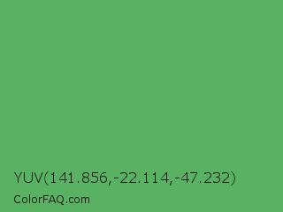YUV 141.856,-22.114,-47.232 Color is a normal green color and the nearest color is Fern #63b76c. Hex code #58b261 and RGB value is rgb(88,178,97). In RGB color space, this color is composed of 35% red, 70% green, 38% blue, In CMYK color space, this color is composed of 51% cyan, 0% magenta, 46% yellow , 30% black , In HSL color space, this color has a hue angle of 126° , 37% saturation and 52% lightness.