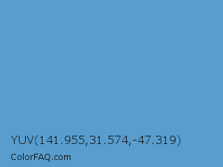 YUV 141.955,31.574,-47.319 Color is a normal blue color and the nearest color is Carolina Blue #56a0d3. Hex code #589dce and RGB value is rgb(88,157,206). In RGB color space, this color is composed of 35% red, 62% green, 81% blue, In CMYK color space, this color is composed of 57% cyan, 24% magenta, 0% yellow , 19% black , In HSL color space, this color has a hue angle of 205° , 55% saturation and 58% lightness.