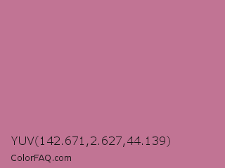 YUV 142.671,2.627,44.139 Color is a light rose color and the nearest color is Charm #d47494. Hex code #c17494 and RGB value is rgb(193,116,148). In RGB color space, this color is composed of 76% red, 45% green, 58% blue, In CMYK color space, this color is composed of 0% cyan, 40% magenta, 23% yellow , 24% black , In HSL color space, this color has a hue angle of 335° , 38% saturation and 61% lightness.