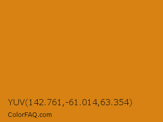 YUV 142.761,-61.014,63.354 Color is a normal orange color and the nearest color is Meteor #d07d12. Hex code #d78213 and RGB value is rgb(215,130,19). In RGB color space, this color is composed of 84% red, 51% green, 7% blue, In CMYK color space, this color is composed of 0% cyan, 40% magenta, 91% yellow , 16% black , In HSL color space, this color has a hue angle of 34° , 84% saturation and 46% lightness.