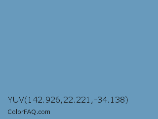 YUV 142.926,22.221,-34.138 Color is a normal blue color and the nearest color is Cerulean Frost #6d9bc3. Hex code #689abc and RGB value is rgb(104,154,188). In RGB color space, this color is composed of 41% red, 60% green, 74% blue, In CMYK color space, this color is composed of 45% cyan, 18% magenta, 0% yellow , 26% black , In HSL color space, this color has a hue angle of 204° , 39% saturation and 57% lightness.