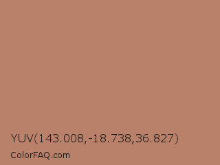 YUV 143.008,-18.738,36.827 Color is a normal orange color and the nearest color is Light Taupe #b38b6d. Hex code #b98169 and RGB value is rgb(185,129,105). In RGB color space, this color is composed of 73% red, 51% green, 41% blue, In CMYK color space, this color is composed of 0% cyan, 30% magenta, 43% yellow , 27% black , In HSL color space, this color has a hue angle of 18° , 36% saturation and 57% lightness.