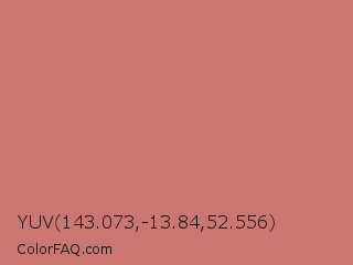YUV 143.073,-13.84,52.556 Color is a light red color and the nearest color is Contessa #c6726b. Hex code #cb7673 and RGB value is rgb(203,118,115). In RGB color space, this color is composed of 80% red, 46% green, 45% blue, In CMYK color space, this color is composed of 0% cyan, 42% magenta, 43% yellow , 20% black , In HSL color space, this color has a hue angle of 2° , 46% saturation and 62% lightness.
