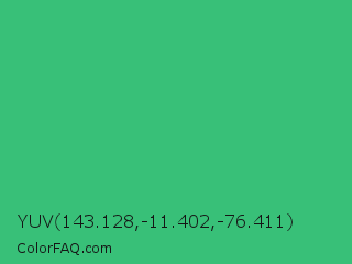 YUV 143.128,-11.402,-76.411 Color is a normal green color and the nearest color is Medium Sea Green #3cb371. Hex code #38c078 and RGB value is rgb(56,192,120). In RGB color space, this color is composed of 22% red, 75% green, 47% blue, In CMYK color space, this color is composed of 71% cyan, 0% magenta, 38% yellow , 25% black , In HSL color space, this color has a hue angle of 148° , 55% saturation and 49% lightness.