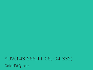 YUV 143.566,11.06,-94.335 Color is a normal cyan color and the nearest color is Light Sea Green #20b2aa. Hex code #24c2a6 and RGB value is rgb(36,194,166). In RGB color space, this color is composed of 14% red, 76% green, 65% blue, In CMYK color space, this color is composed of 81% cyan, 0% magenta, 14% yellow , 24% black , In HSL color space, this color has a hue angle of 169° , 69% saturation and 45% lightness.