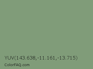 YUV 143.638,-11.161,-13.715 Color is a normal green color and the nearest color is Amulet #7b9f80. Hex code #809c79 and RGB value is rgb(128,156,121). In RGB color space, this color is composed of 50% red, 61% green, 47% blue, In CMYK color space, this color is composed of 18% cyan, 0% magenta, 22% yellow , 39% black , In HSL color space, this color has a hue angle of 108° , 15% saturation and 54% lightness.