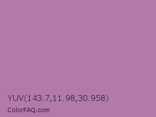 YUV 143.7,11.98,30.958 Color is a normal magenta color and the nearest color is Opera Mauve #b784a7. Hex code #b379a8 and RGB value is rgb(179,121,168). In RGB color space, this color is composed of 70% red, 47% green, 66% blue, In CMYK color space, this color is composed of 0% cyan, 32% magenta, 6% yellow , 30% black , In HSL color space, this color has a hue angle of 311° , 28% saturation and 59% lightness.