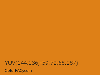 YUV 144.136,-59.72,68.287 Color is a normal orange color and the nearest color is Zest #e5841b. Hex code #de8017 and RGB value is rgb(222,128,23). In RGB color space, this color is composed of 87% red, 50% green, 9% blue, In CMYK color space, this color is composed of 0% cyan, 42% magenta, 90% yellow , 13% black , In HSL color space, this color has a hue angle of 32° , 81% saturation and 48% lightness.