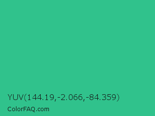 YUV 144.19,-2.066,-84.359 Color is a normal green color and the nearest color is Mountain Meadow #30ba8f. Hex code #30c28c and RGB value is rgb(48,194,140). In RGB color space, this color is composed of 19% red, 76% green, 55% blue, In CMYK color space, this color is composed of 75% cyan, 0% magenta, 28% yellow , 24% black , In HSL color space, this color has a hue angle of 158° , 60% saturation and 47% lightness.