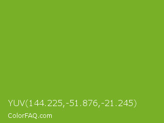 YUV 144.225,-51.876,-21.245 Color is a normal green color and the nearest color is Lima #76bd17. Hex code #78b127 and RGB value is rgb(120,177,39). In RGB color space, this color is composed of 47% red, 69% green, 15% blue, In CMYK color space, this color is composed of 32% cyan, 0% magenta, 78% yellow , 31% black , In HSL color space, this color has a hue angle of 85° , 64% saturation and 42% lightness.