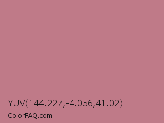 YUV 144.227,-4.056,41.02 Color is a light red color and the nearest color is Old Rose #c08081. Hex code #bf7a88 and RGB value is rgb(191,122,136). In RGB color space, this color is composed of 75% red, 48% green, 53% blue, In CMYK color space, this color is composed of 0% cyan, 36% magenta, 29% yellow , 25% black , In HSL color space, this color has a hue angle of 348° , 35% saturation and 61% lightness.