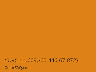 YUV 144.609,-60.446,67.872 Color is a normal orange color and the nearest color is Zest #e5841b. Hex code #de8116 and RGB value is rgb(222,129,22). In RGB color space, this color is composed of 87% red, 51% green, 9% blue, In CMYK color space, this color is composed of 0% cyan, 42% magenta, 90% yellow , 13% black , In HSL color space, this color has a hue angle of 32° , 82% saturation and 48% lightness.