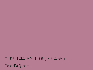 YUV 144.85,1.06,33.458 Color is a normal rose color and the nearest color is English Lavender #b48395. Hex code #b77d93 and RGB value is rgb(183,125,147). In RGB color space, this color is composed of 72% red, 49% green, 58% blue, In CMYK color space, this color is composed of 0% cyan, 32% magenta, 20% yellow , 28% black , In HSL color space, this color has a hue angle of 337° , 29% saturation and 60% lightness.