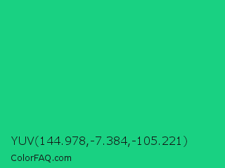 YUV 144.978,-7.384,-105.221 Color is a normal green color and the nearest color is Mountain Meadow Crayola #1ab385. Hex code #19d182 and RGB value is rgb(25,209,130). In RGB color space, this color is composed of 10% red, 82% green, 51% blue, In CMYK color space, this color is composed of 88% cyan, 0% magenta, 38% yellow , 18% black , In HSL color space, this color has a hue angle of 154° , 79% saturation and 46% lightness.