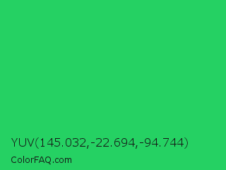 YUV 145.032,-22.694,-94.744 Color is a normal green color and the nearest color is UFO Green #3cd070. Hex code #25d163 and RGB value is rgb(37,209,99). In RGB color space, this color is composed of 15% red, 82% green, 39% blue, In CMYK color space, this color is composed of 82% cyan, 0% magenta, 53% yellow , 18% black , In HSL color space, this color has a hue angle of 142° , 70% saturation and 48% lightness.
