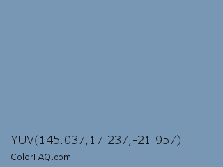 YUV 145.037,17.237,-21.957 Color is a normal blue color and the nearest color is Weldon Blue #7c98ab. Hex code #7897b4 and RGB value is rgb(120,151,180). In RGB color space, this color is composed of 47% red, 59% green, 71% blue, In CMYK color space, this color is composed of 33% cyan, 16% magenta, 0% yellow , 29% black , In HSL color space, this color has a hue angle of 209° , 29% saturation and 59% lightness.