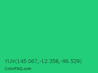 YUV 145.067,-12.358,-96.529 Color is a normal green color and the nearest color is UFO Green #3cd070. Hex code #23ce78 and RGB value is rgb(35,206,120). In RGB color space, this color is composed of 14% red, 81% green, 47% blue, In CMYK color space, this color is composed of 83% cyan, 0% magenta, 42% yellow , 19% black , In HSL color space, this color has a hue angle of 150° , 71% saturation and 47% lightness.