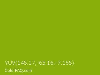 YUV 145.17,-65.16,-7.165 Color is a normal lime color and the nearest color is Apple Green #8db600. Hex code #89af0d and RGB value is rgb(137,175,13). In RGB color space, this color is composed of 54% red, 69% green, 5% blue, In CMYK color space, this color is composed of 22% cyan, 0% magenta, 93% yellow , 31% black , In HSL color space, this color has a hue angle of 74° , 86% saturation and 37% lightness.