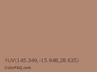 YUV 145.349,-15.948,28.635 Color is a normal orange color and the nearest color is Light Taupe #b38b6d. Hex code #b28771 and RGB value is rgb(178,135,113). In RGB color space, this color is composed of 70% red, 53% green, 44% blue, In CMYK color space, this color is composed of 0% cyan, 24% magenta, 37% yellow , 30% black , In HSL color space, this color has a hue angle of 20° , 30% saturation and 57% lightness.