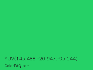YUV 145.488,-20.947,-95.144 Color is a normal green color and the nearest color is UFO Green #3cd070. Hex code #25d167 and RGB value is rgb(37,209,103). In RGB color space, this color is composed of 15% red, 82% green, 40% blue, In CMYK color space, this color is composed of 82% cyan, 0% magenta, 51% yellow , 18% black , In HSL color space, this color has a hue angle of 143° , 70% saturation and 48% lightness.