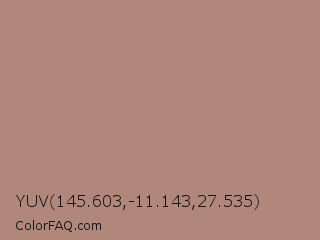 YUV 145.603,-11.143,27.535 Color is a normal red color and the nearest color is Sandrift #ab917a. Hex code #b1867b and RGB value is rgb(177,134,123). In RGB color space, this color is composed of 69% red, 53% green, 48% blue, In CMYK color space, this color is composed of 0% cyan, 24% magenta, 31% yellow , 31% black , In HSL color space, this color has a hue angle of 12° , 26% saturation and 59% lightness.