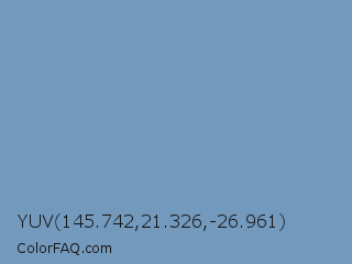 YUV 145.742,21.326,-26.961 Color is a normal blue color and the nearest color is Air Superiority Blue #72a0c1. Hex code #7399bd and RGB value is rgb(115,153,189). In RGB color space, this color is composed of 45% red, 60% green, 74% blue, In CMYK color space, this color is composed of 39% cyan, 19% magenta, 0% yellow , 26% black , In HSL color space, this color has a hue angle of 209° , 36% saturation and 60% lightness.