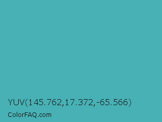 YUV 145.762,17.372,-65.566 Color is a normal cyan color and the nearest color is Verdigris #43b3ae. Hex code #47b1b5 and RGB value is rgb(71,177,181). In RGB color space, this color is composed of 28% red, 69% green, 71% blue, In CMYK color space, this color is composed of 61% cyan, 2% magenta, 0% yellow , 29% black , In HSL color space, this color has a hue angle of 182° , 44% saturation and 49% lightness.