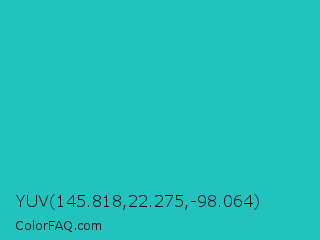 YUV 145.818,22.275,-98.064 Color is a normal cyan color and the nearest color is Java #1fc2c2. Hex code #22c2bf and RGB value is rgb(34,194,191). In RGB color space, this color is composed of 13% red, 76% green, 75% blue, In CMYK color space, this color is composed of 82% cyan, 0% magenta, 2% yellow , 24% black , In HSL color space, this color has a hue angle of 179° , 70% saturation and 45% lightness.