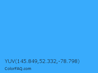 YUV 145.849,52.332,-78.798 Color is a normal blue color and the nearest color is Brilliant Azure #3399ff. Hex code #38abfc and RGB value is rgb(56,171,252). In RGB color space, this color is composed of 22% red, 67% green, 99% blue, In CMYK color space, this color is composed of 78% cyan, 32% magenta, 0% yellow , 1% black , In HSL color space, this color has a hue angle of 205° , 97% saturation and 60% lightness.