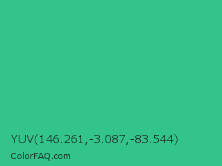 YUV 146.261,-3.087,-83.544 Color is a normal green color and the nearest color is Mountain Meadow #30ba8f. Hex code #33c48c and RGB value is rgb(51,196,140). In RGB color space, this color is composed of 20% red, 77% green, 55% blue, In CMYK color space, this color is composed of 74% cyan, 0% magenta, 29% yellow , 23% black , In HSL color space, this color has a hue angle of 157° , 59% saturation and 48% lightness.
