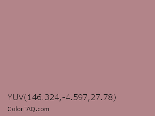 YUV 146.324,-4.597,27.78 Color is a light red color and the nearest color is Brandy Rose #bb8983. Hex code #b28489 and RGB value is rgb(178,132,137). In RGB color space, this color is composed of 70% red, 52% green, 54% blue, In CMYK color space, this color is composed of 0% cyan, 26% magenta, 23% yellow , 30% black , In HSL color space, this color has a hue angle of 353° , 23% saturation and 61% lightness.
