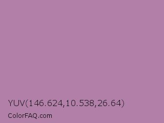 YUV 146.624,10.538,26.64 Color is a normal magenta color and the nearest color is Opera Mauve #b784a7. Hex code #b17fa8 and RGB value is rgb(177,127,168). In RGB color space, this color is composed of 69% red, 50% green, 66% blue, In CMYK color space, this color is composed of 0% cyan, 28% magenta, 5% yellow , 31% black , In HSL color space, this color has a hue angle of 311° , 24% saturation and 60% lightness.