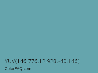YUV 146.776,12.928,-40.146 Color is a normal cyan color and the nearest color is Tradewind #5fb3ac. Hex code #65a5ad and RGB value is rgb(101,165,173). In RGB color space, this color is composed of 40% red, 65% green, 68% blue, In CMYK color space, this color is composed of 42% cyan, 5% magenta, 0% yellow , 32% black , In HSL color space, this color has a hue angle of 187° , 31% saturation and 54% lightness.
