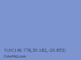 YUV 146.778,30.182,-20.853 Color is a light blue color and the nearest color is Dark Pastel Blue #779ecb. Hex code #7b93d0 and RGB value is rgb(123,147,208). In RGB color space, this color is composed of 48% red, 58% green, 82% blue, In CMYK color space, this color is composed of 41% cyan, 29% magenta, 0% yellow , 18% black , In HSL color space, this color has a hue angle of 223° , 47% saturation and 65% lightness.