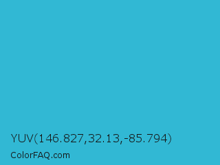 YUV 146.827,32.13,-85.794 Color is a normal cyan color and the nearest color is Scooter #2ebfd4. Hex code #31b8d4 and RGB value is rgb(49,184,212). In RGB color space, this color is composed of 19% red, 72% green, 83% blue, In CMYK color space, this color is composed of 77% cyan, 13% magenta, 0% yellow , 17% black , In HSL color space, this color has a hue angle of 190° , 65% saturation and 51% lightness.