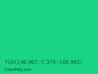 YUV 146.967,-7.379,-106.965 Color is a normal green color and the nearest color is Mountain Meadow Crayola #1ab385. Hex code #19d484 and RGB value is rgb(25,212,132). In RGB color space, this color is composed of 10% red, 83% green, 52% blue, In CMYK color space, this color is composed of 88% cyan, 0% magenta, 38% yellow , 17% black , In HSL color space, this color has a hue angle of 154° , 79% saturation and 46% lightness.