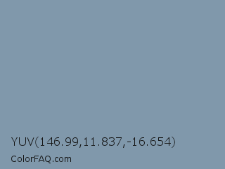 YUV 146.99,11.837,-16.654 Color is a normal blue color and the nearest color is Weldon Blue #7c98ab. Hex code #8098ab and RGB value is rgb(128,152,171). In RGB color space, this color is composed of 50% red, 60% green, 67% blue, In CMYK color space, this color is composed of 25% cyan, 11% magenta, 0% yellow , 33% black , In HSL color space, this color has a hue angle of 207° , 20% saturation and 59% lightness.