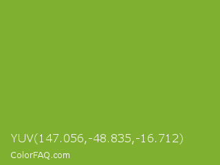YUV 147.056,-48.835,-16.712 Color is a normal green color and the nearest color is Sushi #87ab39. Hex code #80b030 and RGB value is rgb(128,176,48). In RGB color space, this color is composed of 50% red, 69% green, 19% blue, In CMYK color space, this color is composed of 27% cyan, 0% magenta, 73% yellow , 31% black , In HSL color space, this color has a hue angle of 83° , 57% saturation and 44% lightness.