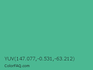 YUV 147.077,-0.531,-63.212 Color is a normal green color and the nearest color is Ocean Green #48bf91. Hex code #4bb892 and RGB value is rgb(75,184,146). In RGB color space, this color is composed of 29% red, 72% green, 57% blue, In CMYK color space, this color is composed of 59% cyan, 0% magenta, 21% yellow , 28% black , In HSL color space, this color has a hue angle of 159° , 43% saturation and 51% lightness.