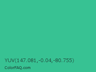 YUV 147.081,-0.04,-80.755 Color is a normal green color and the nearest color is Mountain Meadow #30ba8f. Hex code #37c293 and RGB value is rgb(55,194,147). In RGB color space, this color is composed of 22% red, 76% green, 58% blue, In CMYK color space, this color is composed of 72% cyan, 0% magenta, 24% yellow , 24% black , In HSL color space, this color has a hue angle of 160° , 56% saturation and 49% lightness.