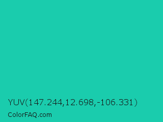 YUV 147.244,12.698,-106.331 Color is a normal cyan color and the nearest color is Java #1fc2c2. Hex code #1accad and RGB value is rgb(26,204,173). In RGB color space, this color is composed of 10% red, 80% green, 68% blue, In CMYK color space, this color is composed of 87% cyan, 0% magenta, 15% yellow , 20% black , In HSL color space, this color has a hue angle of 170° , 77% saturation and 45% lightness.