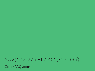 YUV 147.276,-12.461,-63.386 Color is a normal green color and the nearest color is Emerald #50c878. Hex code #4bbd7a and RGB value is rgb(75,189,122). In RGB color space, this color is composed of 29% red, 74% green, 48% blue, In CMYK color space, this color is composed of 60% cyan, 0% magenta, 35% yellow , 26% black , In HSL color space, this color has a hue angle of 145° , 46% saturation and 52% lightness.