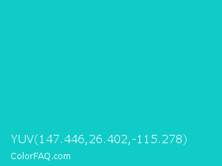 YUV 147.446,26.402,-115.278 Color is a normal cyan color and the nearest color is Robins Egg Blue #00cccc. Hex code #10ccc9 and RGB value is rgb(16,204,201). In RGB color space, this color is composed of 6% red, 80% green, 79% blue, In CMYK color space, this color is composed of 92% cyan, 0% magenta, 1% yellow , 20% black , In HSL color space, this color has a hue angle of 179° , 85% saturation and 43% lightness.