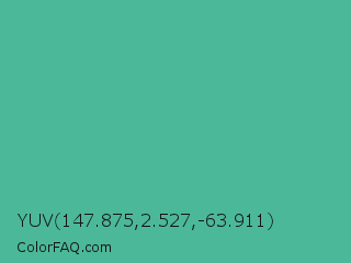 YUV 147.875,2.527,-63.911 Color is a normal green color and the nearest color is Ocean Green #48bf91. Hex code #4bb899 and RGB value is rgb(75,184,153). In RGB color space, this color is composed of 29% red, 72% green, 60% blue, In CMYK color space, this color is composed of 59% cyan, 0% magenta, 17% yellow , 28% black , In HSL color space, this color has a hue angle of 163° , 43% saturation and 51% lightness.