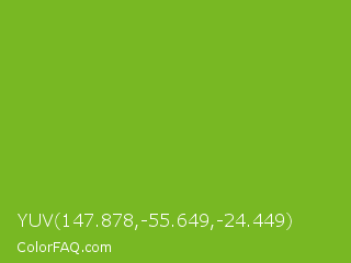YUV 147.878,-55.649,-24.449 Color is a normal green color and the nearest color is Lima #76bd17. Hex code #78b823 and RGB value is rgb(120,184,35). In RGB color space, this color is composed of 47% red, 72% green, 14% blue, In CMYK color space, this color is composed of 35% cyan, 0% magenta, 81% yellow , 28% black , In HSL color space, this color has a hue angle of 86° , 68% saturation and 43% lightness.