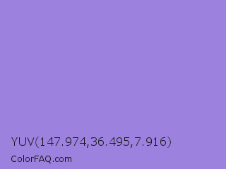 YUV 147.974,36.495,7.916 Color is a light indigo color and the nearest color is Lilac Bush #9874d3. Hex code #9d81de and RGB value is rgb(157,129,222). In RGB color space, this color is composed of 62% red, 51% green, 87% blue, In CMYK color space, this color is composed of 29% cyan, 42% magenta, 0% yellow , 13% black , In HSL color space, this color has a hue angle of 258° , 58% saturation and 69% lightness.