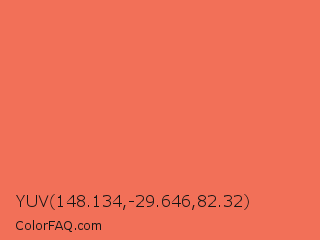 YUV 148.134,-29.646,82.32 Color is a light red color and the nearest color is Burnt Sienna #e97451. Hex code #f27058 and RGB value is rgb(242,112,88). In RGB color space, this color is composed of 95% red, 44% green, 35% blue, In CMYK color space, this color is composed of 0% cyan, 54% magenta, 64% yellow , 5% black , In HSL color space, this color has a hue angle of 9° , 86% saturation and 65% lightness.