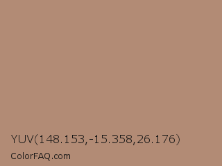 YUV 148.153,-15.358,26.176 Color is a normal orange color and the nearest color is Light Taupe #b38b6d. Hex code #b28b75 and RGB value is rgb(178,139,117). In RGB color space, this color is composed of 70% red, 55% green, 46% blue, In CMYK color space, this color is composed of 0% cyan, 22% magenta, 34% yellow , 30% black , In HSL color space, this color has a hue angle of 22° , 28% saturation and 58% lightness.