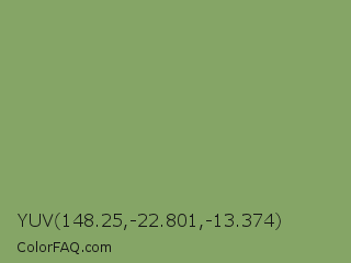 YUV 148.25,-22.801,-13.374 Color is a normal green color and the nearest color is Asparagus #87a96b. Hex code #85a566 and RGB value is rgb(133,165,102). In RGB color space, this color is composed of 52% red, 65% green, 40% blue, In CMYK color space, this color is composed of 19% cyan, 0% magenta, 38% yellow , 35% black , In HSL color space, this color has a hue angle of 90° , 26% saturation and 52% lightness.