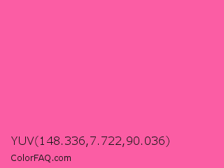 YUV 148.336,7.722,90.036 Color is a light rose color and the nearest color is Brilliant Rose #ff55a3. Hex code #fb5da4 and RGB value is rgb(251,93,164). In RGB color space, this color is composed of 98% red, 36% green, 64% blue, In CMYK color space, this color is composed of 0% cyan, 63% magenta, 35% yellow , 2% black , In HSL color space, this color has a hue angle of 333° , 95% saturation and 67% lightness.